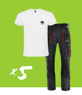 5 kompletów ubrań roboczych: spodnie do pasa i t-shirt